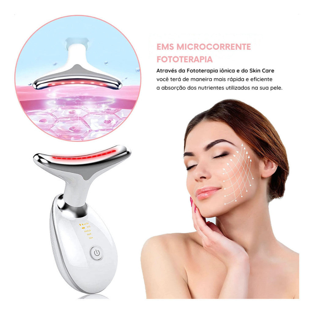 Utiliza tecnologia de microcorrente para estimular os músculos faciais e acelerar a produção de colágeno e elastina — promovendo firmeza, elasticidade e redução de linhas de expressão. E ainda conta com 3 luzes LED terapêuticas, cada uma com benefícios específicos: